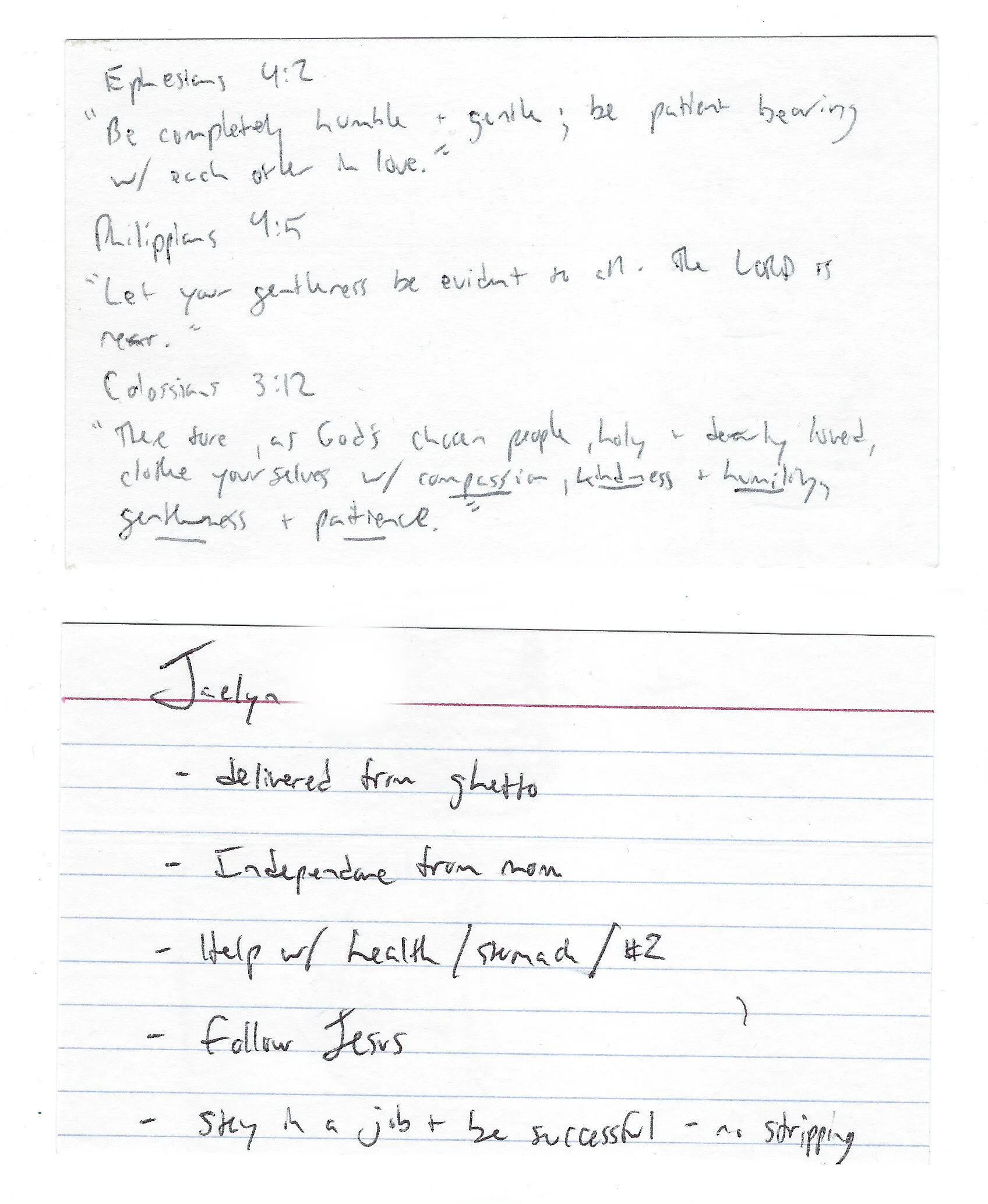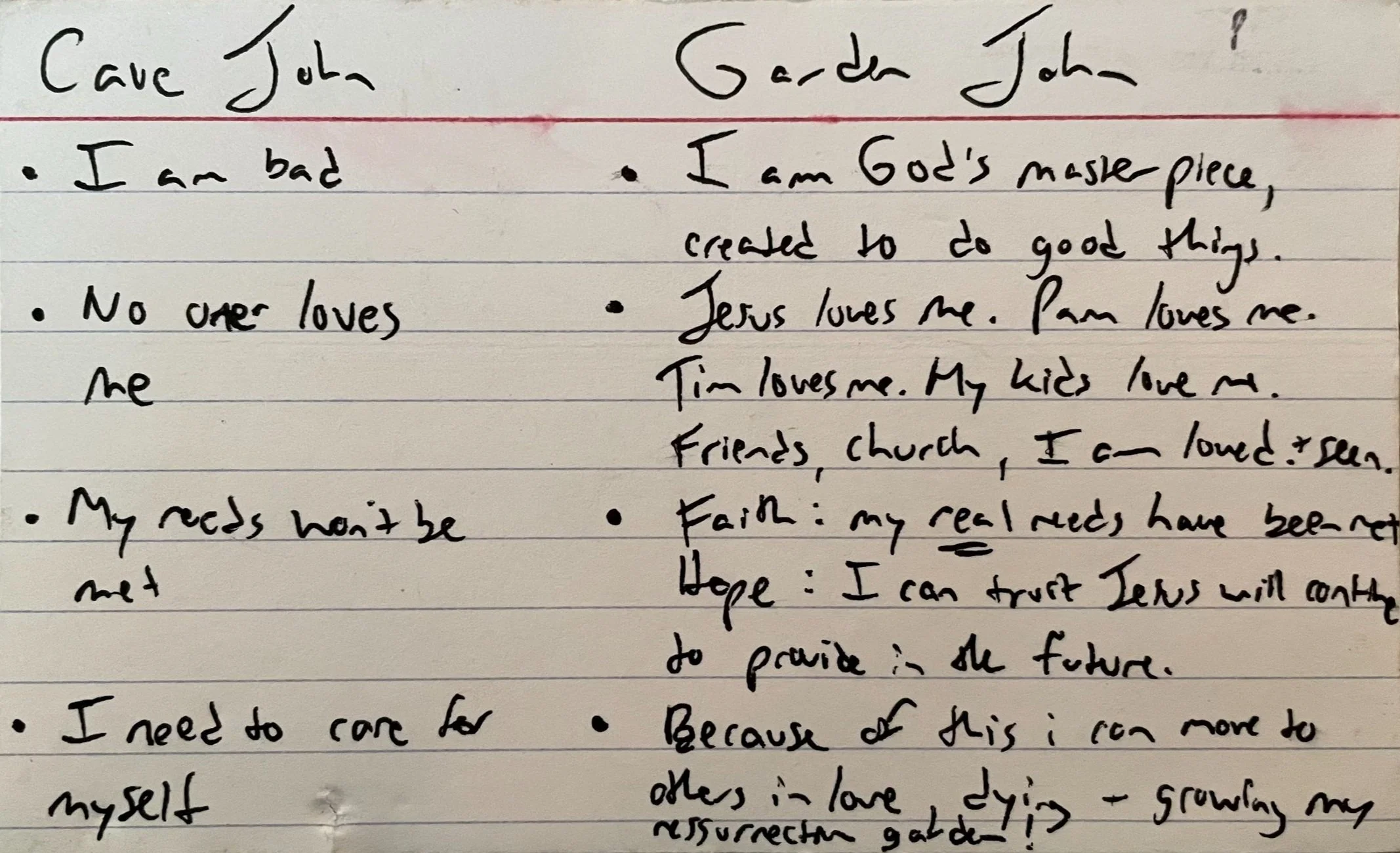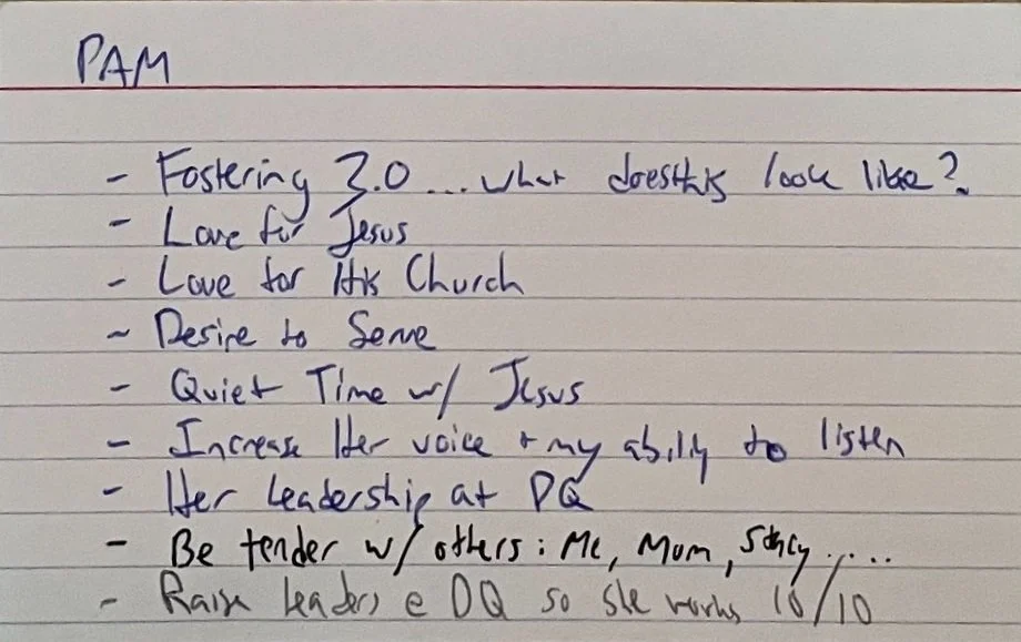 When Kim was at the bottom of the steps picking up her books, I found myself feeling empty. In that emp-tiness I begin hungering for God. When “I” die, it makes room for God. I’m off the throne in my life and I hunger to know him in new ways. When I don’t do my will, it opens up the door of prayer.