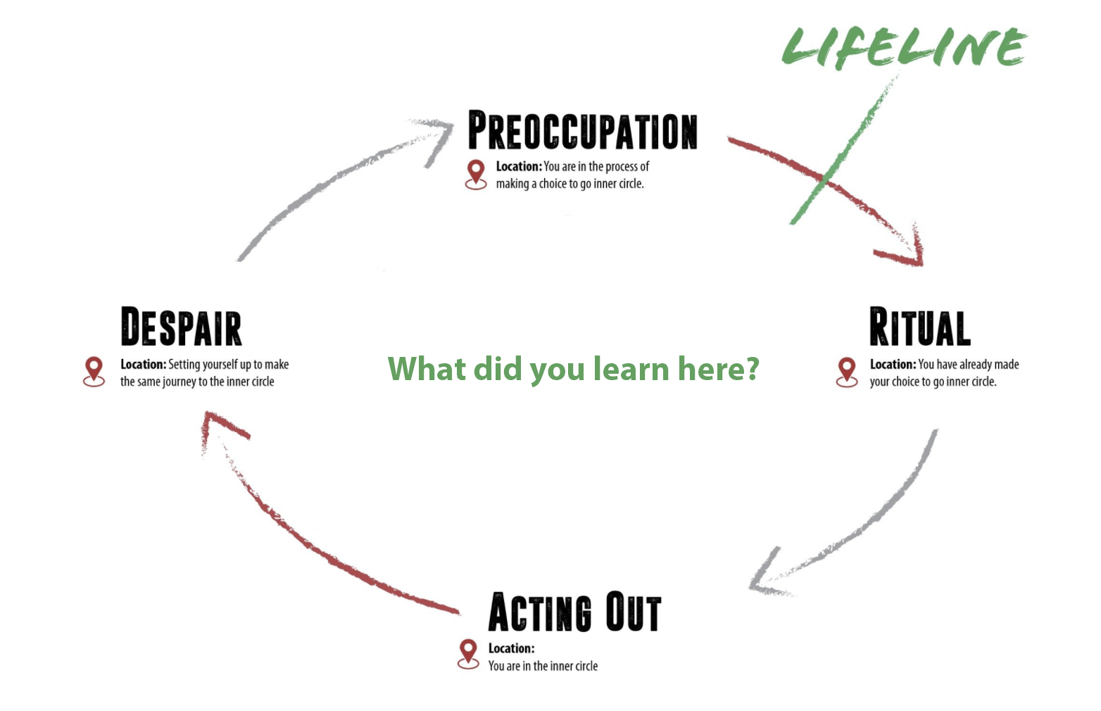 Think back again to the addictive cycle, when we first started sending LifeLines during Preoccupation to STOP going into Ritual. When you first started sending LifeLines here, it was really hard, almost impossible. After a while, it became much easier and we all grew from it.
